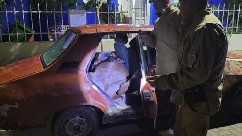 El control se realizó en medio de una calle y el hallazgo sorprendió a los policías. Dentro del auto aparecieron tres lechones faenados y un cordero acostado en la parte trasera.