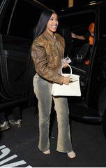 Su par, en cuero crema, era uno de los estilos de bombas Tabi con tacón de Margiela. Aunque no es precisamente un calzado para el día a día, los Tabi son uno de los zapatos más populares en la moda en este momento. Acaban de encabezar la lista del Lyst Index de los productos más candentes de 2023 para el tercer trimestre y también los han llevado desde Dua Lipa hasta Chloë Sevigny. Cardi, que fue vista en Long Island, hizo que los zapatos fueran muy suyos al combinarlos con una chaqueta de cuero desgastada, jeans con pintura en spray y su característica bolsa Birkin de Hermès. (Su colección de lujosos bolsos es inigualable).