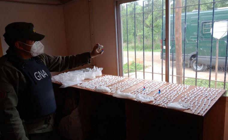 Los Efectivos de la Unidad de Investigaciones de Delitos Complejos y Procedimientos Judiciales Venado Tuerto de la Gendarmería Nacional Argentina hallaron 2 kilos 45 gramos de cocaína, 191 gramos de marihuana, 442 gramos de polvo blanco para estiramiento, tres plantas de marihuana, varios elementos de fraccionamiento y nueve balanzas de precisión.