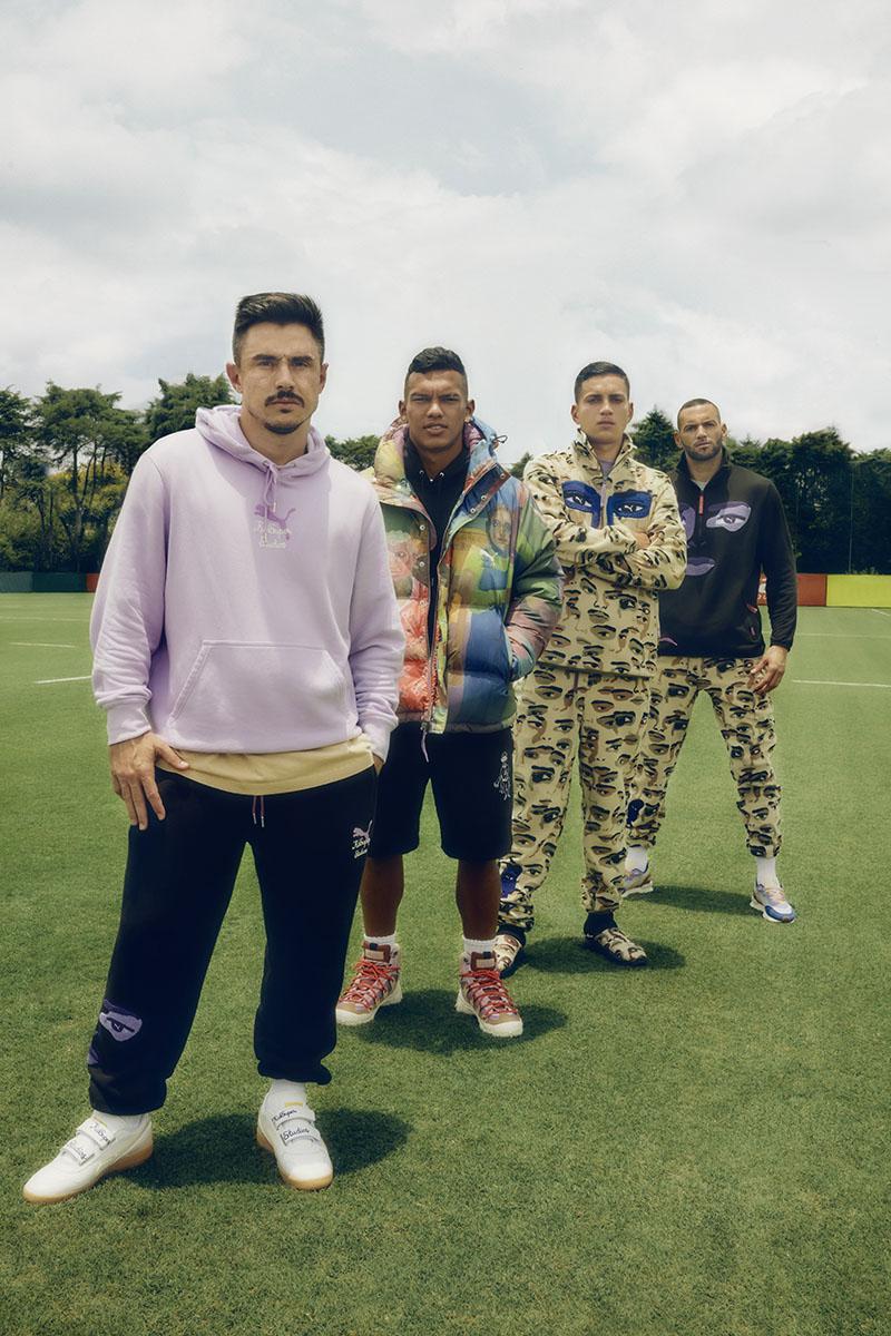 Las nuevas prendas mezclan los diseños de la firma con estampados experimentales y fuera de lo común. El editorial está realizado en un campo de fútbol y los atletas Gabriel Veron, William, Weverton y Renan han posado como modelos para la colección. Las fotografías de Puma x KidSuper Studios se inspiraron en el amor que Dillane siente por el fútbol y su equipo favorito, el club brasileño Palmeiras, que recientemente se alzó con la Copa Libertadores.