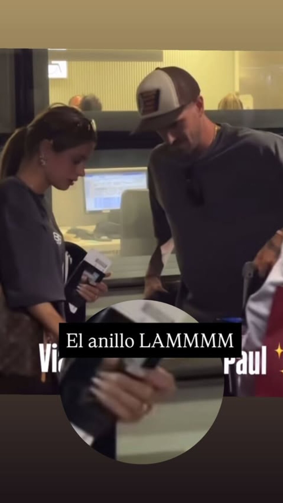 El accesorio fue advertido por la periodista Cande Mazzone, quien publicó una historia en Instagram en la que amplió una de las fotos del aeropuerto y señaló el anillo con la leyenda “EL ANILLO LAMMMM”. El gesto alimentó aún más las versiones que comenzaron días atrás, cuando la cantante compartió imágenes en la playa con una estética romántica y una pose que tapaba deliberadamente sus manos.