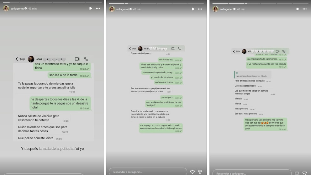 Los mensajes revelan un intercambio agresivo. Gonet acusó a Pettinato de ser un "mentiroso" y de tener comportamientos desaprensivos, mientras que él la descalificó con insultos sobre su trabajo y estilo de vida. Las acusaciones fueron severas de ambos lados, reflejando un fuerte desencuentro emocional.